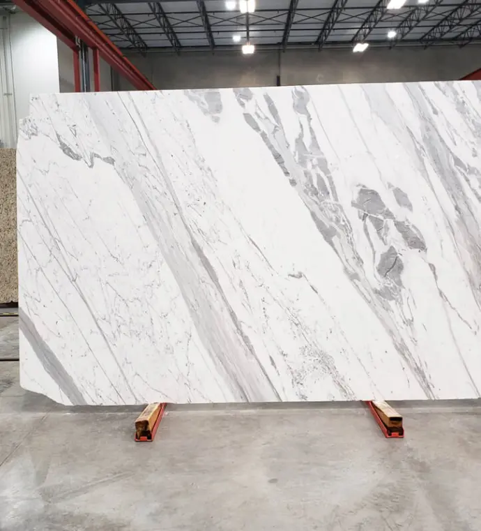 Statuary marble tends to have a white background with dark gray or blue veins that create a unique pattern like a natural painting on the marble surface.