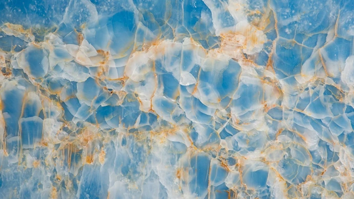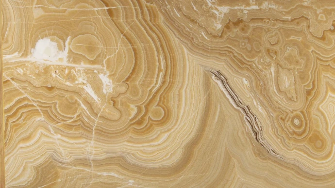 Onyx is a semi-transparent natural stone formed from calcite (calcium carbonate) deposits, distinct from the classic mineralogy onyx (chalcedony). In the natural stone & interior industry, the term onyx refers to a luxurious decorative stone with translucent (backlit) properties and highly artistic visual patterns.